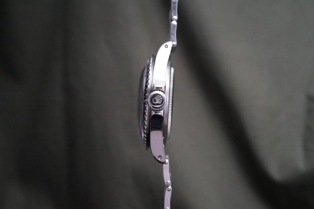 大変雰囲気の良いパンプキングロスミラーの5513が入荷しました。裸眼では気にならない位のルーペレベルの極小のパティナはありますが、全体を通してミラーにありがちな艶抜けは殆ど無く、ビカビカの光沢を残した漆黒のブラックカラーを保ちつつ、夜光もパンプキンカラーのオールトリチウムとかなり良い状態のダイアルです。個体の評価に影響する夜光インデックスにも欠損は見られません。ケースも痩せ過ぎ等もなく全体を通して良好な状態です。ほんの少しだけグレーが入った黒めのロング5ベゼルが、このダイアルの雰囲気に本当によくマッチします。当時のドット無しリューズも残り、年式の近いブレスには状態の良い人気のFF80スイスリベットブレスが付属します。機械は3姿勢時で日差15秒以内に収まる精度です。オリジナリティ・テイスト、コンディショが整ったおススメの5513ギルトミラーです。気になる方は是非お問い合わせくださいませ。