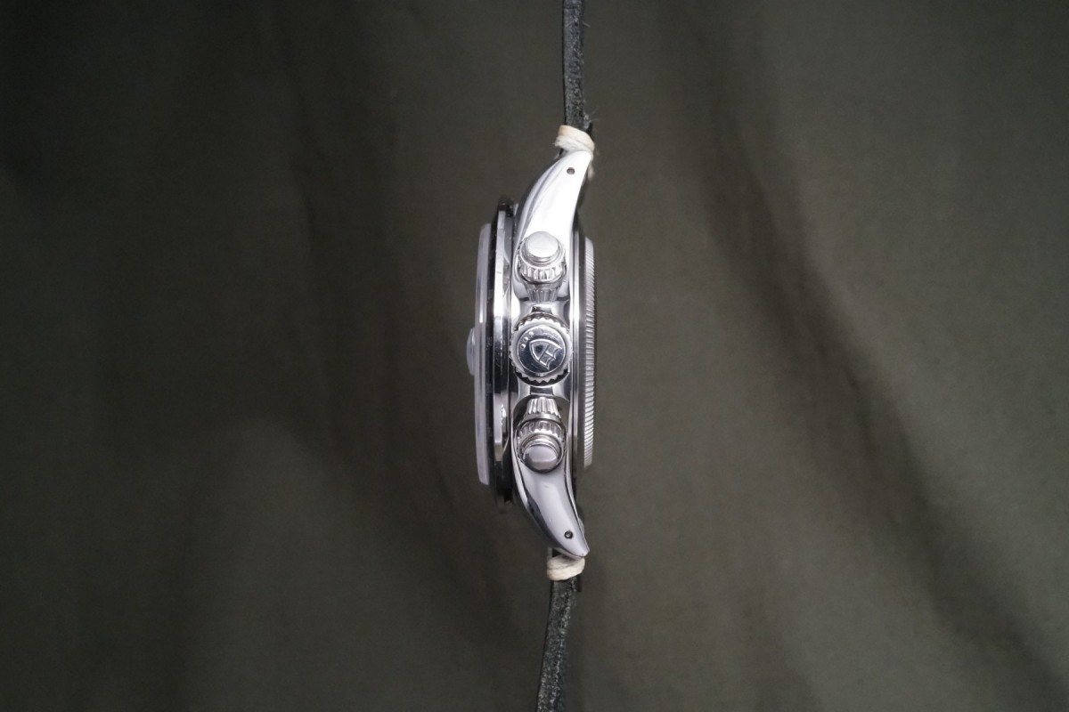 クロノタイム第3世代のタイガーモデルが入荷しました。当時のチュードルアンバサダーに就任したプロゴルファータイガーウッズとのコラボモデルで、792~系シリーズのダイアルの中央に「TIGER」と印字されているのが特徴です。第2世代のセカンドモデルまで採用されたカマボコケースが有名なクロノタイムですが、このサードモデルからコマボコケースに比べるとシャープなオイスターケースに変更となります。乳白色のポーセリン調のホワイトダイアルは当時のままの綺麗な状態で、インデックス・針共にルミノバ夜光が欠落なく残っています。迫力のあるケースはラグも長く太くどっしりとしており、ブラックベゼルも目立つ打痕等もありません。長い間チュードル人気を支えてきた代表モデル、クロノタイムタイガーは如何でしょうか。